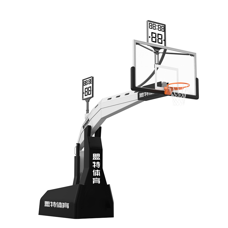 液压篮球架就是篮球架底座里面有一套液压升降系统,可以完成篮球架设定的标准高度上升或者下降以及行走的需要。其中有手动和电动液压篮球架之分。